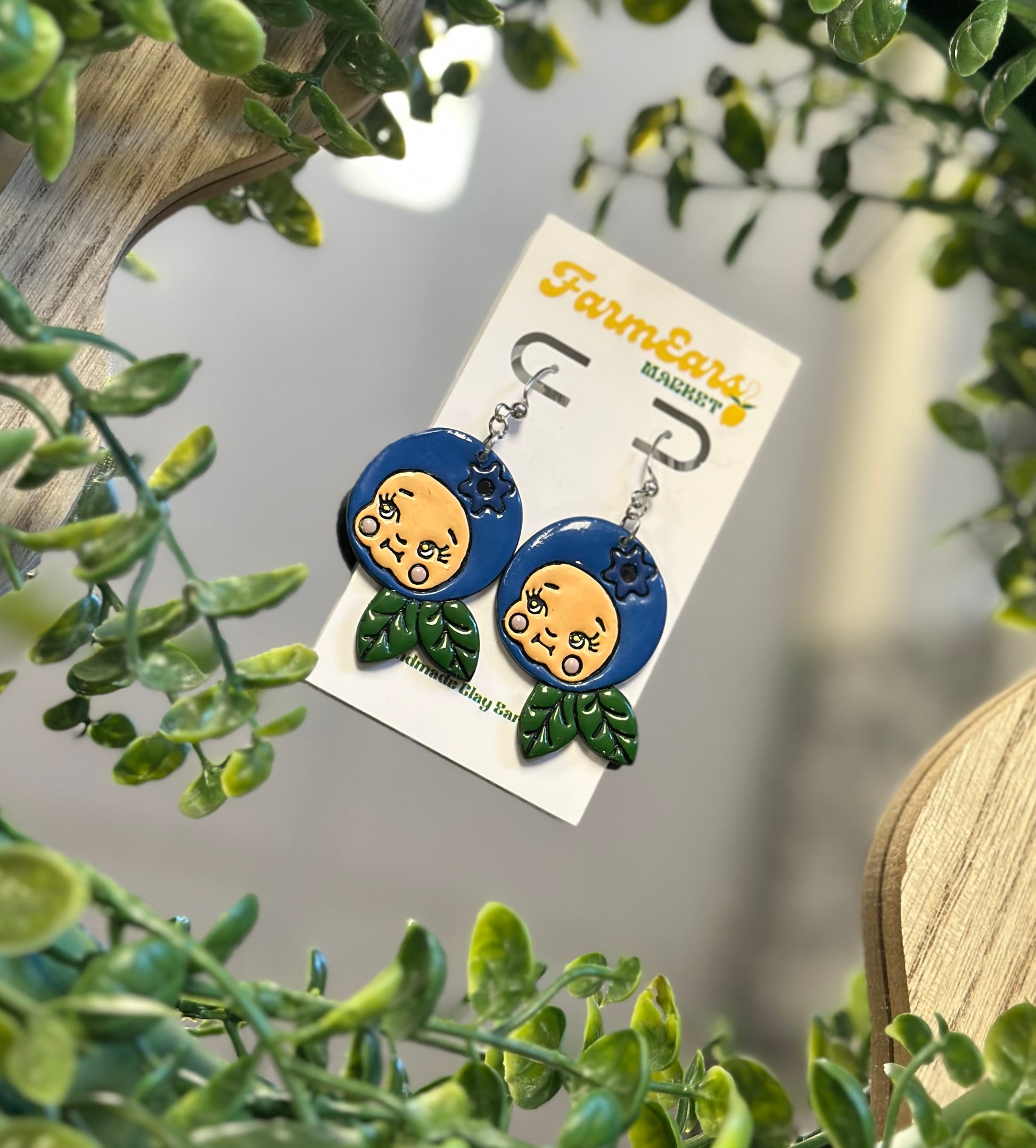 Made with polymer clay, to clean use a damp wash cloth with warm water.